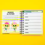 Es una agenda de 52 semanas, que puedes empezar el mes del año que quieras, y donde además de apuntar tus cosas del día día, encontrarás retos semanales donde desarrollar tu creatividad, escribiendo, dibujando, recortado, esculpiendo, investigando, experimentando... ¡de todo!